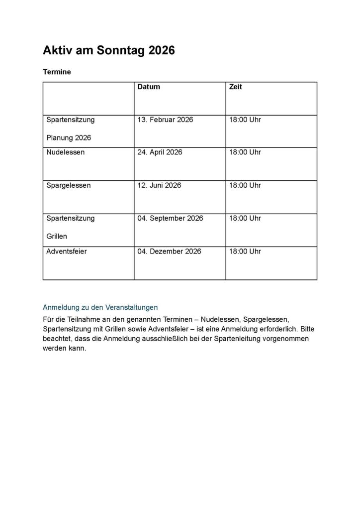 Spartenbeschreibung … Allgemeines, Termine, etc